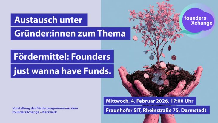 Die erste Ausgabe des foundersXchange 2026 wird vom ATHENE Digital Hub Cybersecurity durchgeführt. Unter dem Motto „Fördermittel: Founders just wanna have Funds“ werden die verschiedenen Förderprogramme aus dem foundersXchange-Netzwerk vorgestellt.